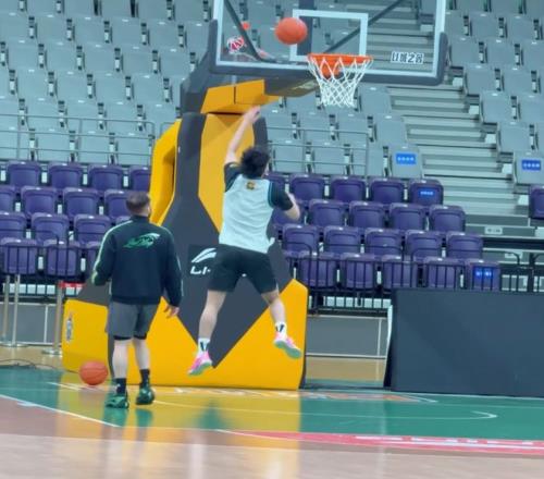 對(duì)廣州踩場(chǎng)!徐昕與眾人打招呼,李虎翼加練,烏戈提艾倫+談比賽