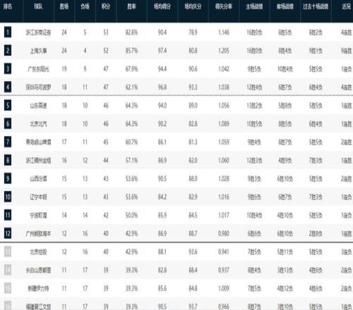 CBA排名大變天!廣廈重返第一,廣東恐被擠出前四,遼寧跌至第十